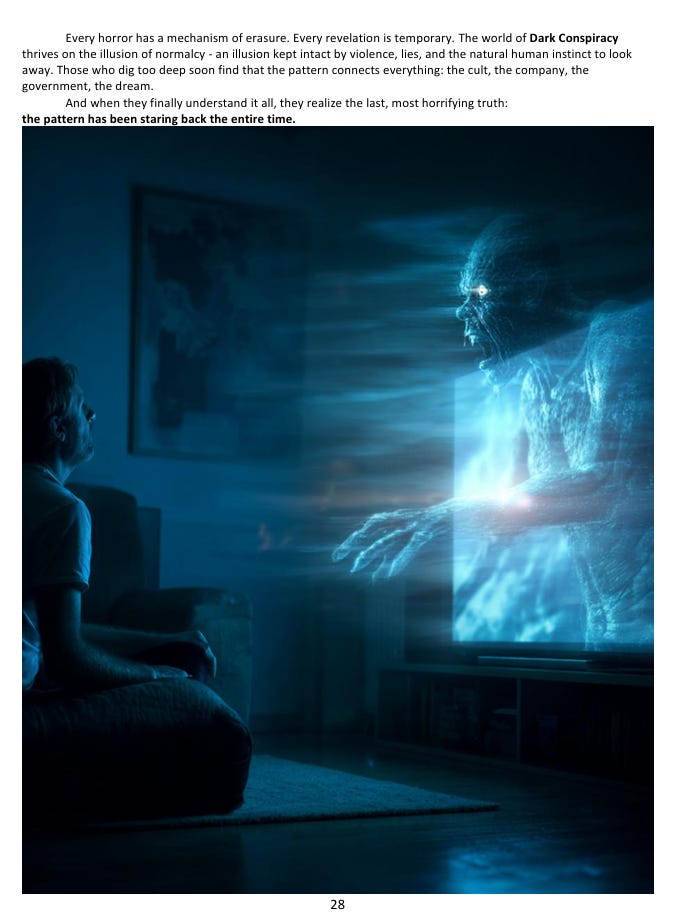 I think this one will particularly resonate with readers of this Substack. If you’re someone who thinks about how systems really operate versus how they present themselves publicly, Dark Conspiracy is essentially that instinct taken to its most extreme possible conclusion.